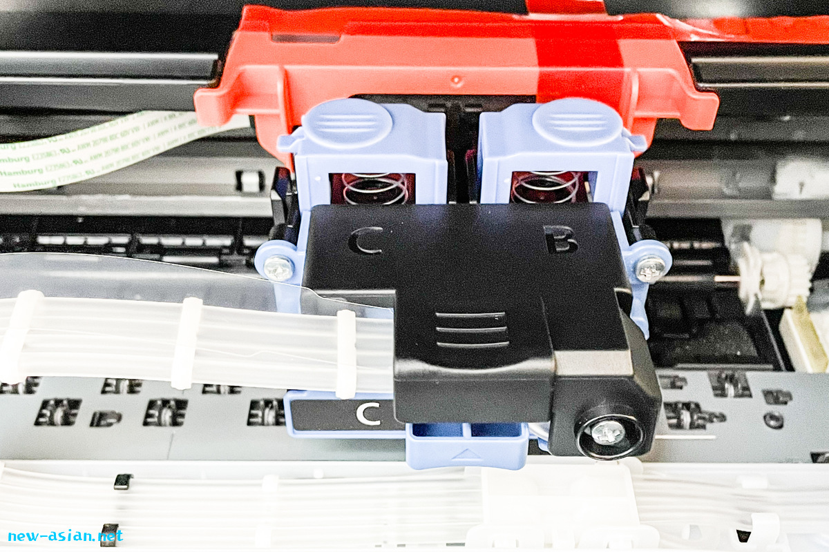 헤드를 저기 두 슬롯에 장착해야 합니다. C B 두자리가 있는데 C는 컬러이고 B는 검정헤드를 장착하는곳입니다. 그런데 두 슬롯이 너무 빡쎄서 장착하는데 여간 힘들지가 않았네요. 혹시라도 뭔가 잘못될까봐 진땀을 흘렸습니다. 16만원이 많지는 않지만 왔다갔다 수리하는것도 스트레스 받는 일입니다.